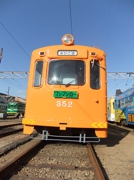 阪堺電車は上り下りの双方向で約6分刻みで運行しています。各種の車輌が走る中でキーフェルの広告電車は351形の車輌です。一日に何度か往復しますから、その間に見ることができます。オレンジカラーのイキイキした色は見る人に活力を与えてくれます。躍動感があり、歓喜と生命感あふれるこの色は正にラッキーカラーとも言えるでしょう。見ることができたらラッキーかも知れませんよ。